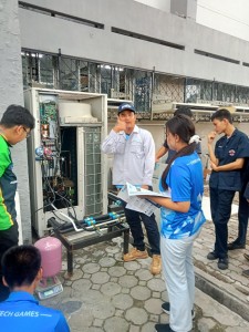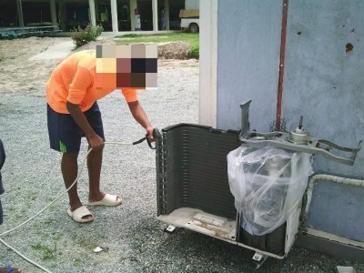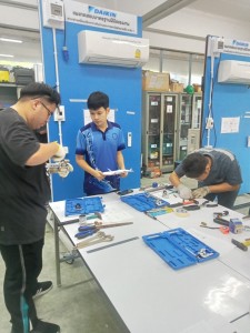 2 ปี ที่ผ่านมานำนักศึกษาออกปฏิบัติงานล้าง บำรุงรักษาเครื่องปรับอากาศ ศาลาประชาคมอำเภอบ้านบึง จังหวัดชลบุรี กย67