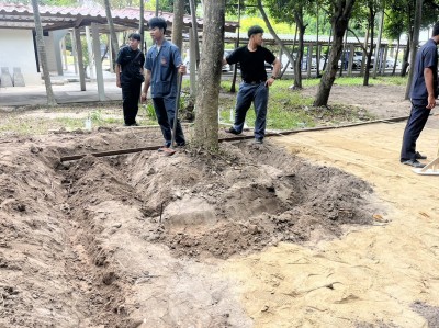 คณะผู้บริหาร คณะครู นักเรียน แผนกโลจีสติก ช่างเชื่อมโลหะ สถาปัตยกรรม ก่อสร้าง พัฒนาพื้นที่ภายในวิทยาลัยโดยการจัดทำลานที่นั่งอเนกประสงค์