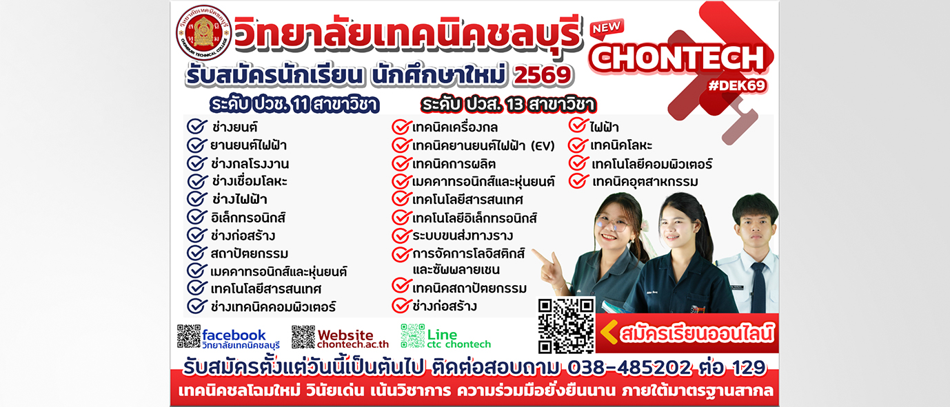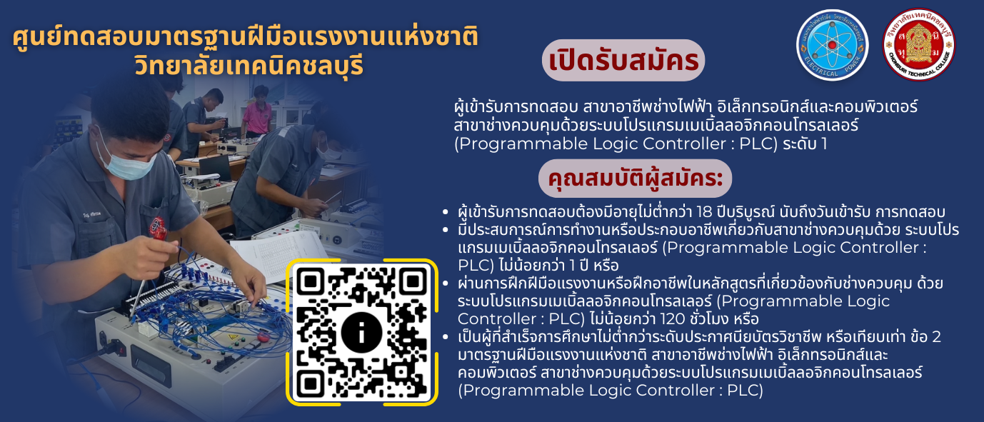 ประกาศวิทยาลัยเทคนิคชลบุรี รายชื่อผู้มีสิทธิ์เข้ารับการประเมินสมรรถภาพครั้งที่ 1 (การสอบข้อเขียน)