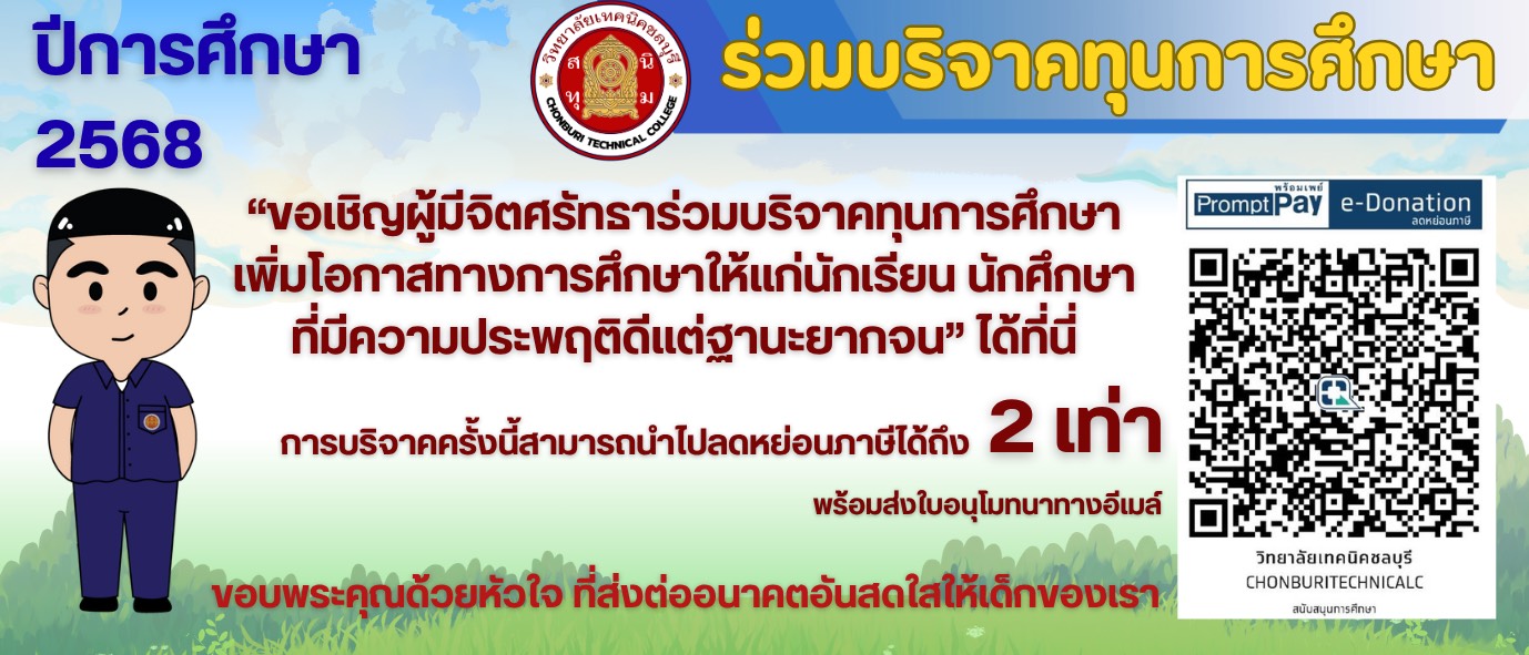 ประกาศวิทยาลัยเทคนิคชลบุรี เรื่อง มาตรการสถานศึกษาปลอดบุหรี่และบุหรี่ไฟฟ้า