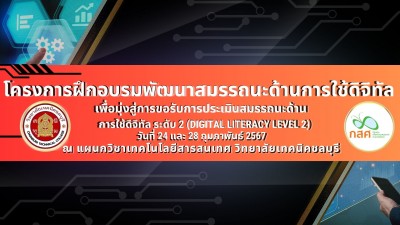 โครงการฝึกอบรมพัฒนาสมรรถนะด้านการใช้ดิจิทัลเพื่อมุ่งสู่การขอรับการประเมินสมรรถนะ ด้านการใช้ดิจิทัล ระดับ 2 (Digital Literacy Level 2) วันเสาร์ที่ 24 และ 28 กุมภาพันธ์ 2567