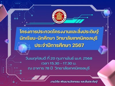 2 ปี ที่ผ่านมาภาพการจัดประกวดสิ่งประดิษฐ์ของคนรุ่นใหม่ ระดับสถานศึกษา ประจำปีการศึกษา 2566 ในวันที่ 22 กุมภาพันธ์ 2567 ณ อาคาร 78 ปี วิทยาลัยเทคนิคชลบุรี
