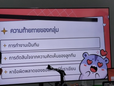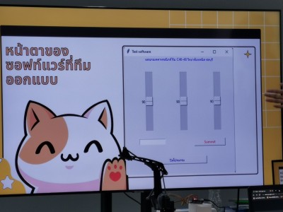 นักเรียนผู้เข้ารับการอบรมนำเสนอผลงานกลุ่ม การโปรแกรมหุ่นยนต์ที่กลุ่มของตนเองคิดค้น