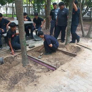 3 ปี ที่ผ่านมาควบคุมนักศึกษาทำกิจกรรมร่วมใจปรับภูมิทัศน์พื้นสวนหย่อมบริเวณหลังห้องอาคารเรีนน 2