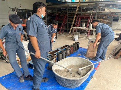 3 ปี ที่ผ่านมาบรรยากาศการเรียน รายวิชา คอนกรีตเทคโนโลยี นักศึกษาผสมคอนกรีตตามกำลังเพื่อเตรียมทดสอบคอนกรีตตามมาตรฐาน ACI และ ASTM