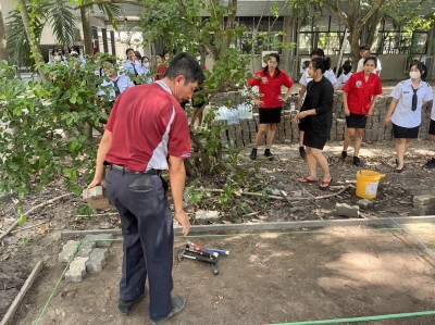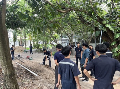 คณะผู้บริหาร คณะครู นักเรียน แผนกโลจีสติก ช่างเชื่อมโลหะ สถาปัตยกรรม ก่อสร้าง พัฒนาพื้นที่ภายในวิทยาลัยโดยการจัดทำลานที่นั่งอเนกประสงค์