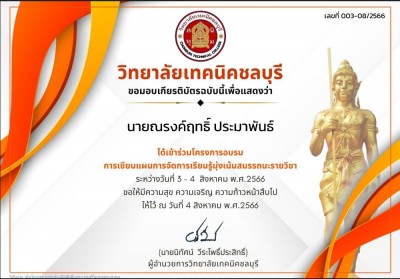 3 ปี ที่ผ่านมาอบรมการเขียนแผนการจัดการเรียนรู้ มุ่งเน้น สมรรถนะรายวิชา