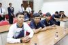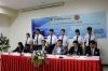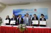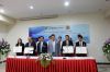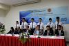 Mr.Ju Xumming กรรมการผู้จัดการ บริษัท ปริ๊งซ์ เฉิงซาน ไทร์ ประเทศไทย จำกัด นางสาวไอยดา  เอี่ยมท่า บริษัท ปริ๊งซ์ เฉิงซาน ไทร์ ประเทศไทย จำกัด  นายสิบหมื่น ชัยโพธิ์สินธุ์ จัดหางานจังหวัดชลบุรี ร่วมพิธีลงนาม  พร้อมทั้งแขกผู้มีเกียรติทุกท่าน ที่เข้าร่วมพิธีลงนามความร่วมมือ  ณ  ห้องประชุม 103 หอประชุมธำรง บัวศรี มหาวิทยาลัยบูรพา อำเภอเมือง จ.ชลบุรี