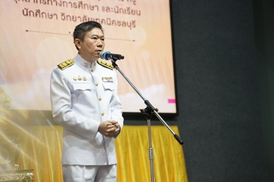 กล่าวต้อนรับ และให้โอวาท ตลอดจน นโยบายในการปฏิบัติตน ให้กับ ข้าราชการครู ที่มารายงานตัวเพื่อบรรจุในตำแหน่ง ครูผู้ช่วย ณ อาคาร78ปี วิทยาลัยเทคนิคชลบุรี