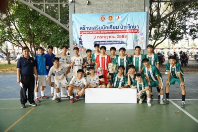 มอบถ้วยรางวัลคู่ชิงชนะเลิศกีฬาฟุตซอล พบกันระหว่าง ทีมออกะโรย พบกับ ทีม แมนเช็ดตุ๊ด all star ภายใต้โครงการสร้างเสริมนักเรียนนักศึกษา ดูแลสุขภาพ สุขภาวะอนามัยและห่างไกลจากยาเสพติดประจำปีการศึกษา 2568