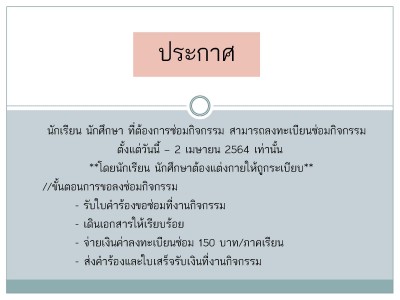 ซ่อมกิจกรรมนักเรียน นักศึกษา ตามประกาศ